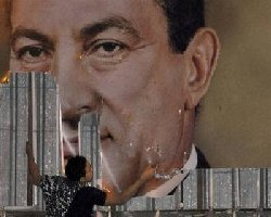 An anti-government protester defaces a picture of Egypt's President Hosni Mubarak in Alexandria, 230 km (140 miles) north of Cairo, January 25, 2011.